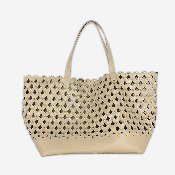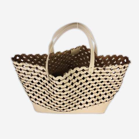 Tote made from genuine leather scrap with a solid leather accent at the bottom part of the bag